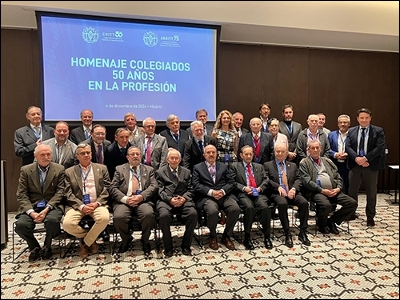El evento, lleno de momentos emotivos, tuvo lugar en Madrid y reunió a una nutrida representación del Colegio, Junta de Gobierno y decanos territoriales, junto a familiares y colegas de profesión. En total, se reconoció a una treintena de colegiados que terminaron sus estudios en 1974, llegados desde distintas ciudades del país para recibir este merecido homenaje.